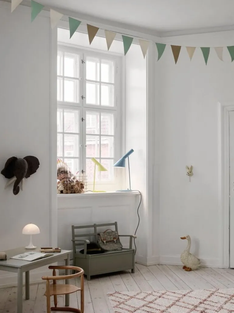 AJ Mini bordslampan av Louis Poulsen är en mindre version av Arne Jacobsens klassiska design, den passar perfekt vid nattduksbordet eller fönsterbrädet. Den ikoniska utformningen hos Louis Poulsens AJ-kollektion kom till år 1957 när den legendariska danska arkitekten Arne Jacobsen designade SAS Royal Hotel i Köpenhamn, inklusive inredning och möbler. Den tidlösa lampan har en skulpturliknande form som skapats av grundläggande, geometriska former: en konformad skärm med en enkel cylinderfot. Den justerbara skärmen, som är vitmålad på insidan, ger i från sig ett mjukt, behagligt sken som inte bländar. En smal arm och en lätt fot gör den här klassiska AJ-lampans stil komplett.