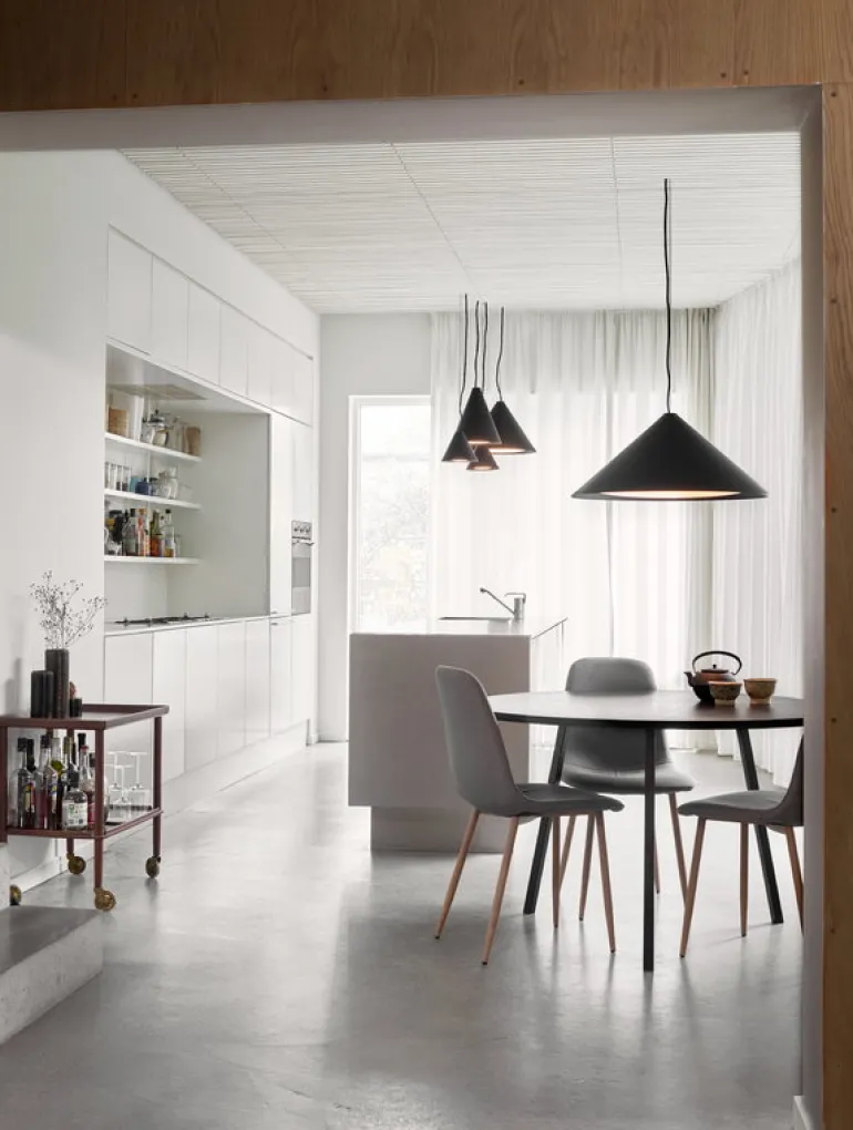 Louis Poulsens pendellampa Keglen 175 är en del av en karismatisk kollektion armaturer, skapade av Bjaerke Ingels Groups BIG Ideas-team under ledning av arkitekten Jakob Lange. Keglen-lamporna i olika storlekar har alla exakt samma konstruktion, men olika personligheter och ett unikt sätt att sprida ljus i rummet. Det integrerade, böjda glaset sprider ett jämnt och mjukt nedåtriktat ljus, medan den öppna delen på toppen filtrerar ljuset även uppåt, vilket ger både stämning och balans. Den passar utmärkt för både privata och offentliga rum, och ser särskilt spännande ut när den grupperas till en dynamisk ensemble, med andra Keglen-lampor. Den minsta Keglen-lampan blir även en tjusig liten fönsterlampa.