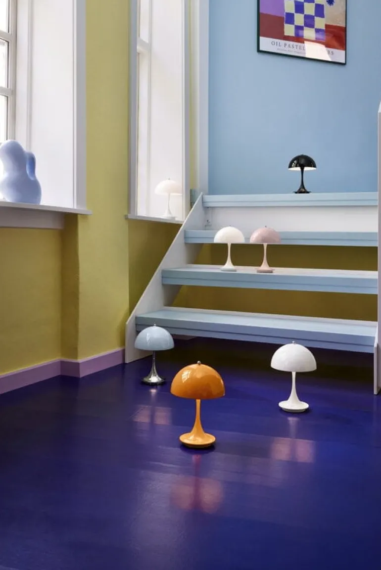 Louis Poulsens Panthella 160 Portable V2 bordslampa är en trådlös utomhusversion av en av de mest populära produkterna som Verner Panton designat. Lampan är uppladdningsbar och dimbar – den lyser upp din balkong eller uteplats i upp till 5 timmar och är lätt att ta med sig in när kvällen är slut. Lampan drivs av utbytbara batterier som kan laddas upp med induktiv laddning eller en USB-kabel.