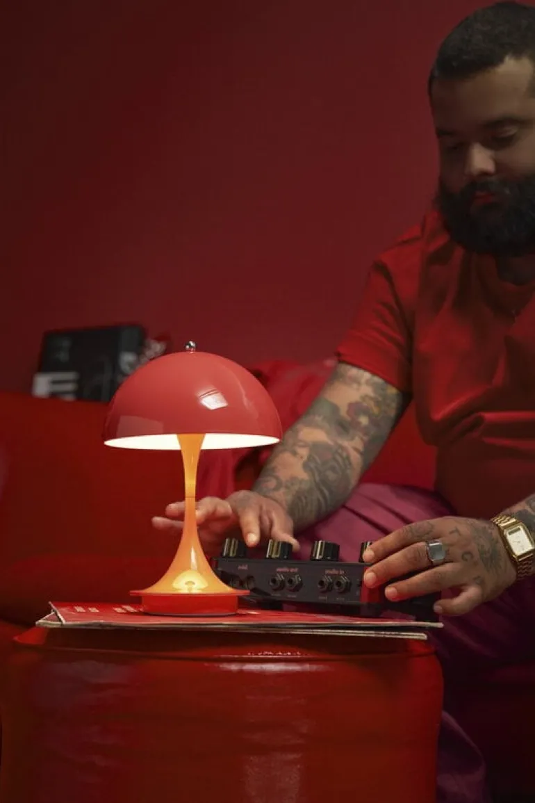 Louis Poulsens bordslampa Panthella 160 Portable V3 är en sladdlös version av en av den danske designern Verner Pantons mest älskade lampor, och den passar perfekt både inomhus och utomhus. Den uppladdningsbara lampan har en touchdimmer med tre ljusstyrkor och kan lysa i upp till 8,5 timmar på full styrka – idealisk för att lysa upp balkongen eller trädgården innan du tar in den för natten. Panthella 160 Portable V3 drivs av batteri och är tillverkad helt i återvunnen plast, och den kan laddas med antingen en induktionsladdare eller den medföljande USB-C-kabeln.