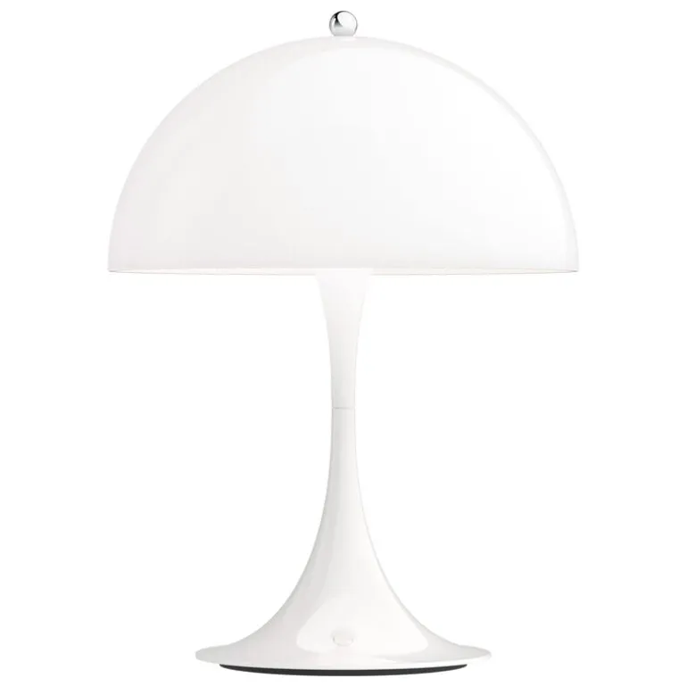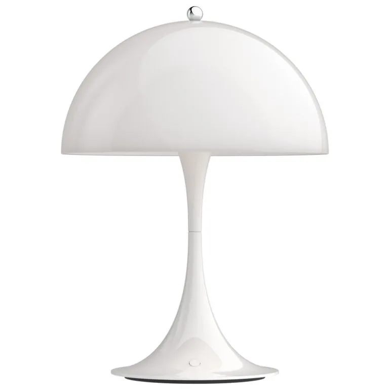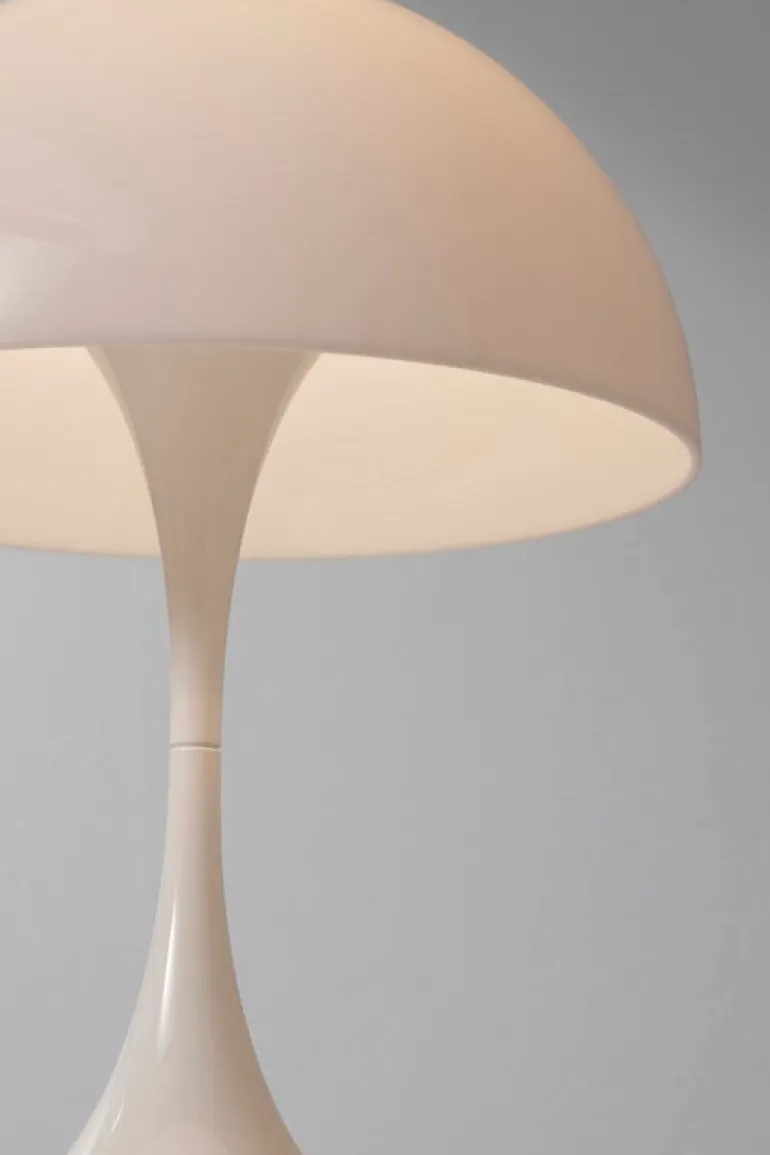 När Panton skapade sin första Panthella var hans mål att ta fram en lampa där både foten och skärmen skulle fungera som reflektorer. Ljuskällan är dold under den halvklotsformade akrylskärmen, medan den trumpetformade foten ger lampan en distinkt, balanserad siluett som även bidrar till ljusspridningen. Panthella, som ursprungligen släpptes 1971, anses idag vara en klassiker inom dansk formgivning och finns i en mängd olika storlekar och färger.