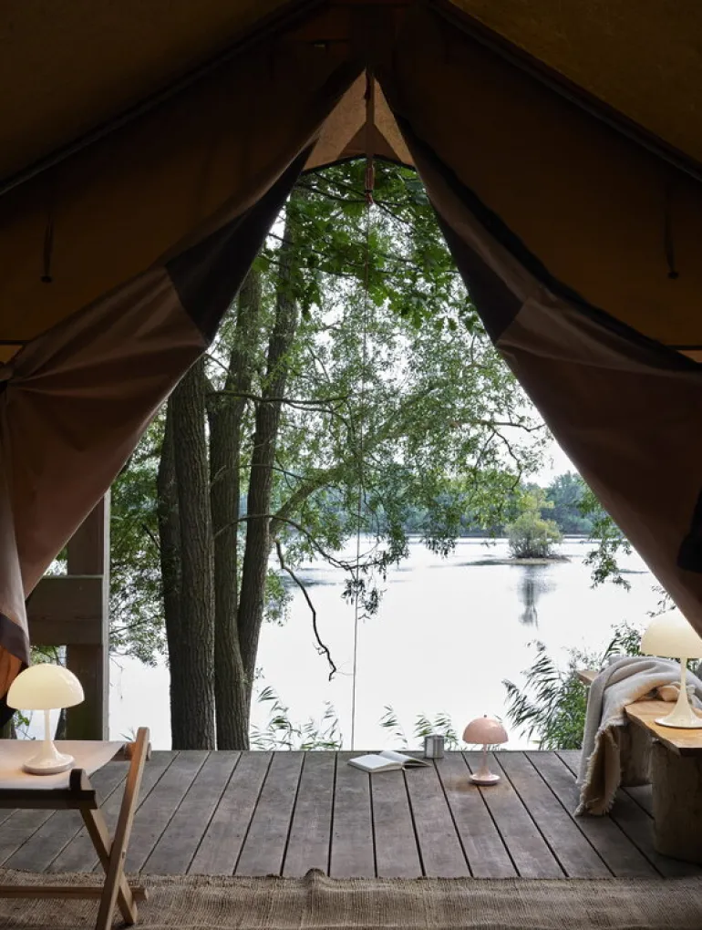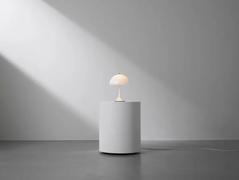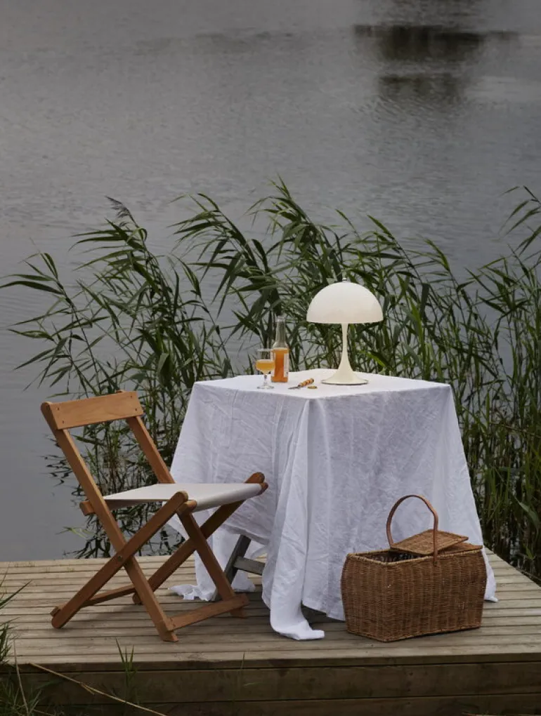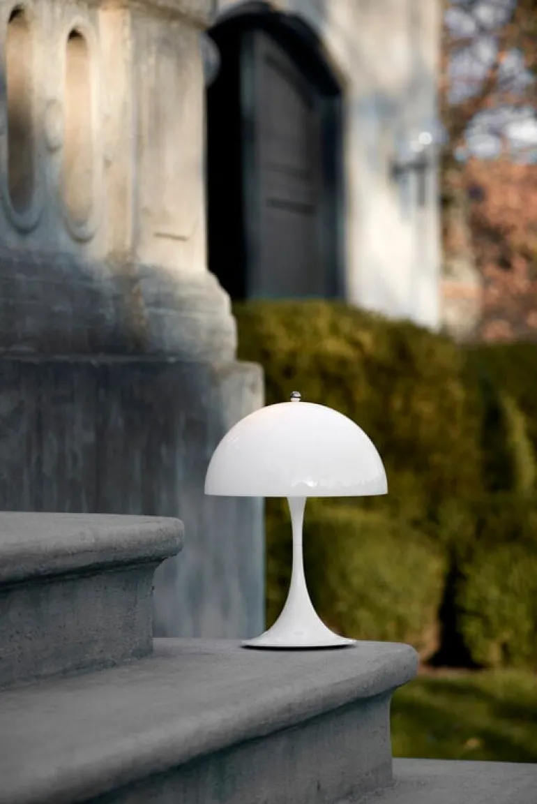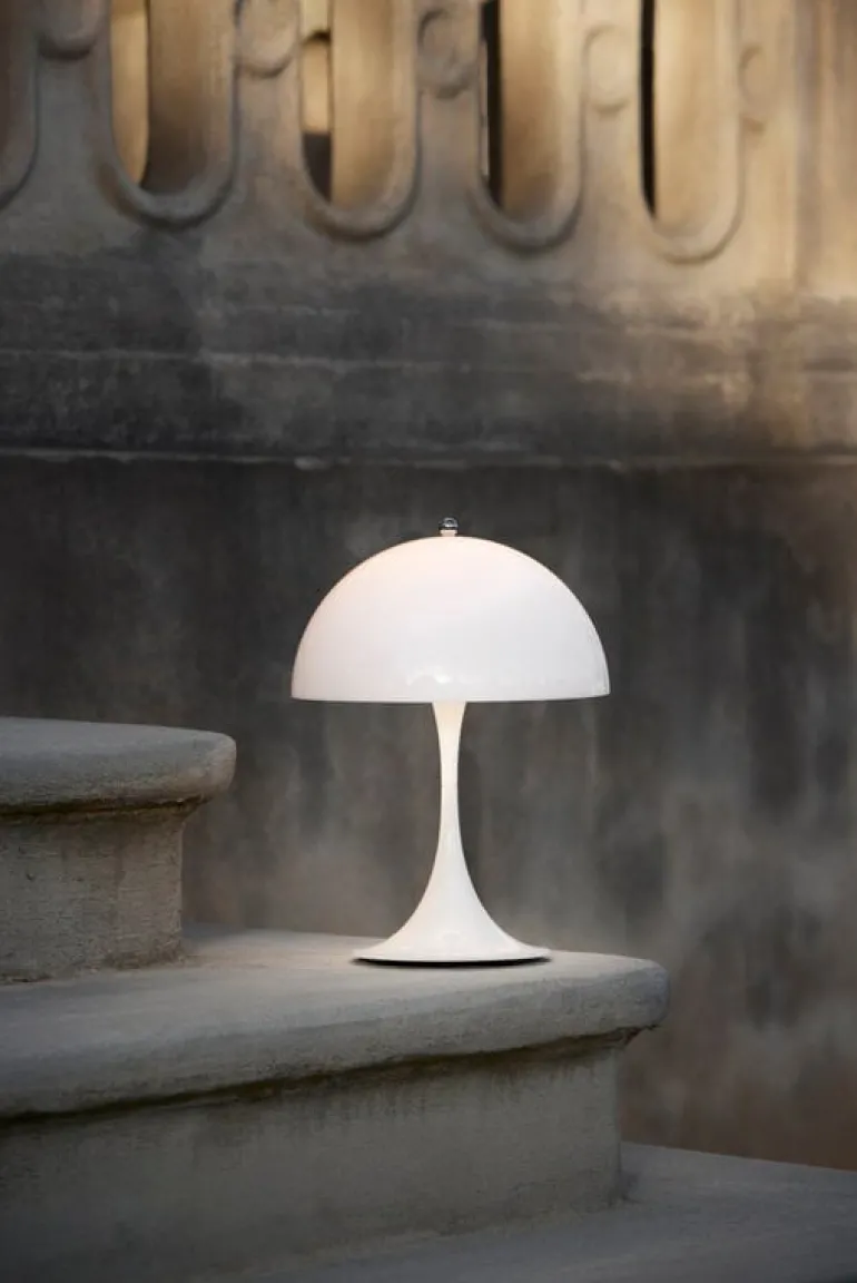 Louis Poulsens bordslampa Panthella 250 Portable är en mindre och sladdlös version av en av de mest populära produkterna som Verner Panton designat. Lampan är uppladdningsbar och dimbar – den lyser upp din balkong eller uteplats i upp till 5 timmar och den är enkel att ta med när du ska gå in för kvällen. Lampan drivs av ett uppladdningsbart batteri.