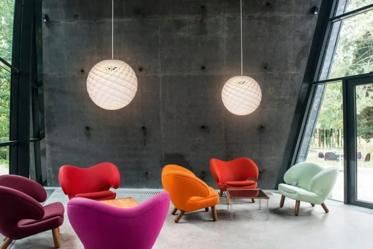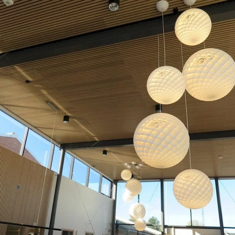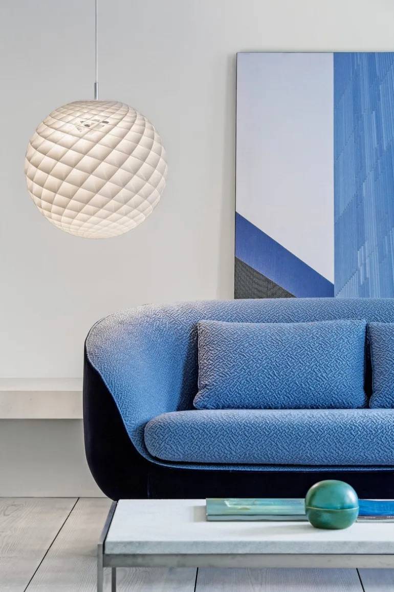 Louis Poulsens pendellampa Patera 600 har en rogivande, mattvit yta och ett drag av raffinerad, matematisk skönhet. Designern Øivind Slaatto fick sin inspiration från Fibonaccisekvensen som förekommer i naturen i form av spiralmönster: pendellampan består av diamantformade celler som är arrangerade i en form som påminner om frömönstren hos solrosor och tallkottar. När lampan är tänd lyser cellerna på ett fascinerande sätt och förhindrar dessutom bländning. Den intrikata strukturen och den livfulla ytan gör Patera till en modern ljuskrona som är perfekt att använda i rum med hög takhöjd.