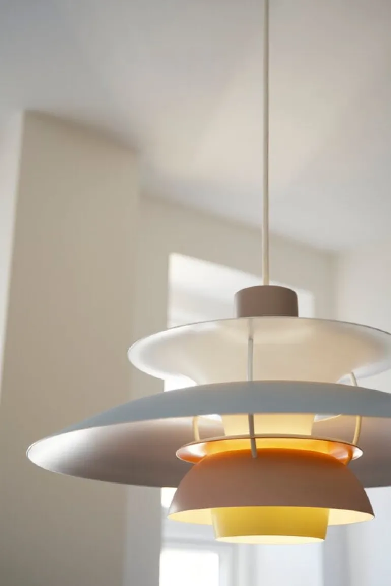 Louis Poulsens taklampa PH 5, designad av Poul Henningsen 1958, är en dansk designikon som har fått enorm global popularitet. Taklampans struktur är både elegant och innovativ: de vackra, lager-på-lager skärmarna förhindrar bländning och ger ett behagligt, varmtonat ljus i alla rum. Namnet på taklampan hänvisar till dess designer och huvudskärmens diameter på 50 centimeter. Taklampan PH 5 är perfekt ovanför ett matbord men passar också för högre montering i olika arkitektoniska utrymmen.