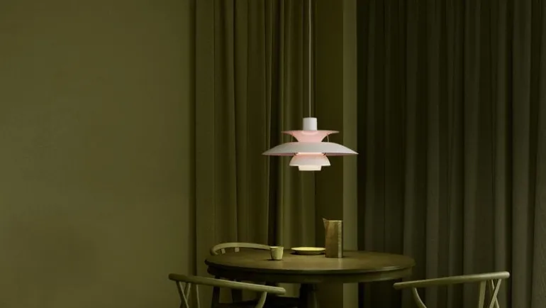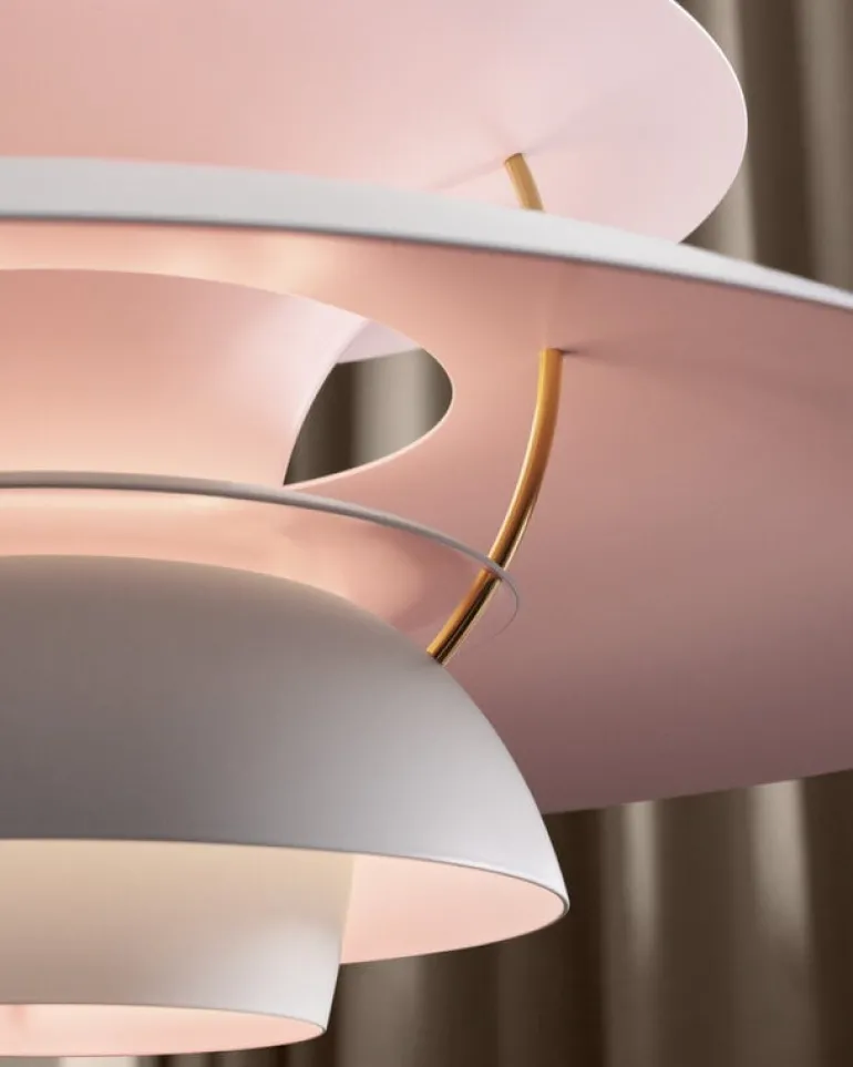 PH 5 Anniversary Edition, som lanserats för att fira Louis Poulsens 150-årsdag, är ett unikt samlarobjekt. Utsidan på jubileumsmodellen är målad i mattvitt och insidan är färgad i blekrosa, medan de mässingsfärgade detaljerna ger lampan ett sofistikerat intryck.