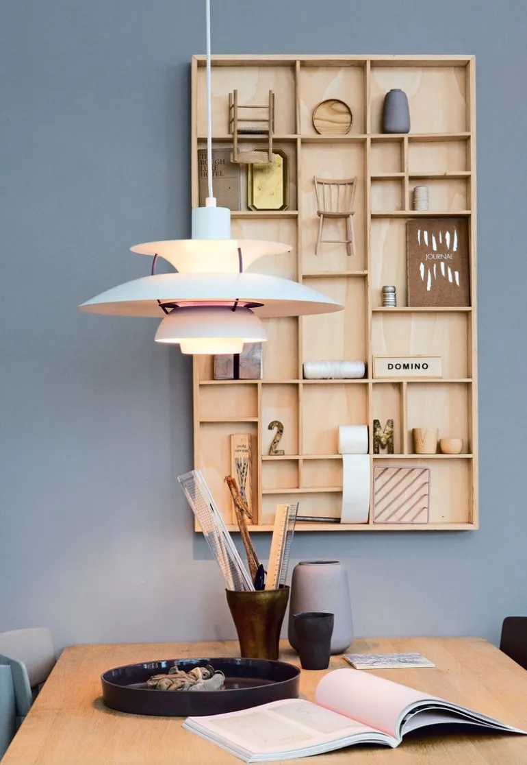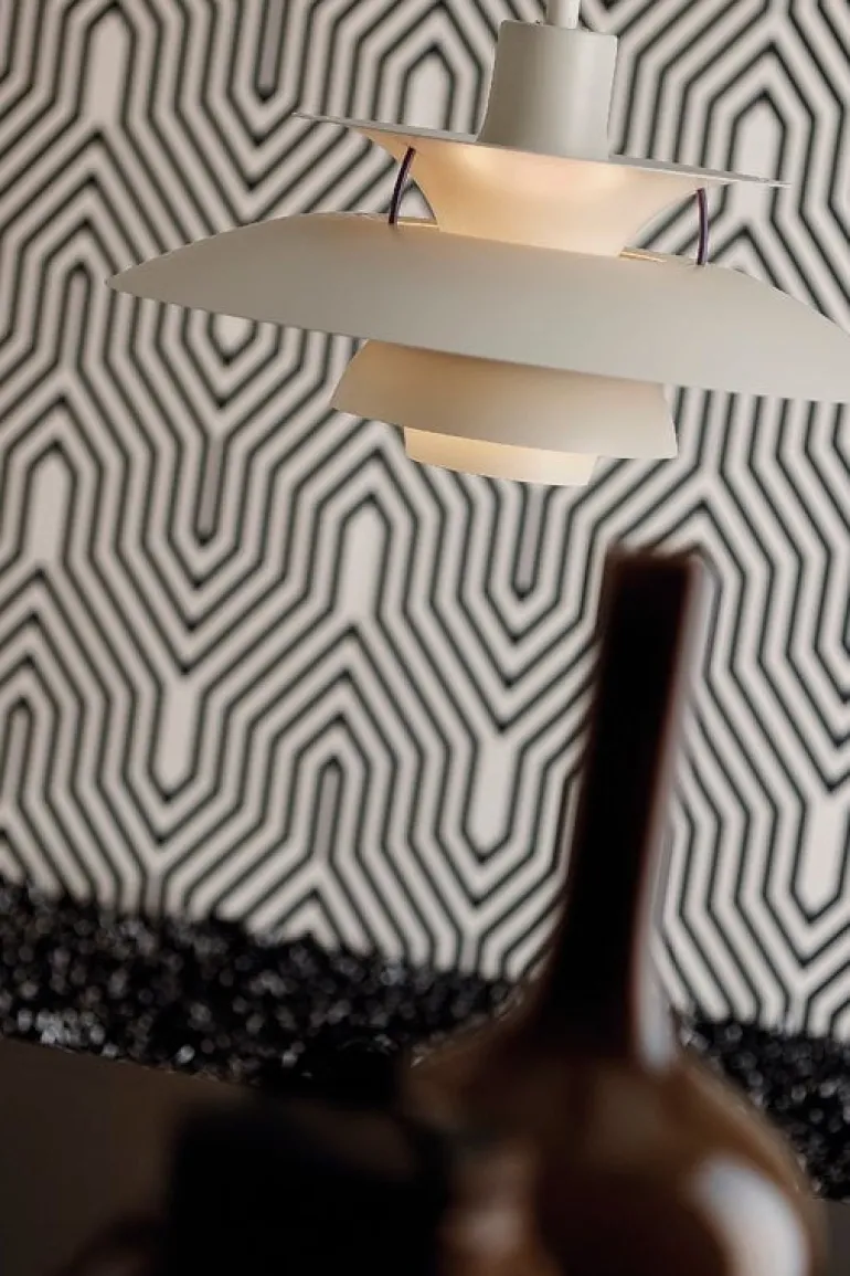 För att fira 60-årsjubileet för Poul Henningsens pendellampa PH 5 har Louis Poulsen gett ut den älskade klassikern i både nya och ursprungliga färger. PH 5 i klassisk vit har mjuka vita nyanser, lila detaljer och blå antireflexskiva.