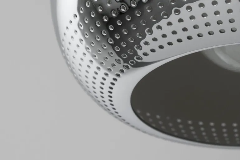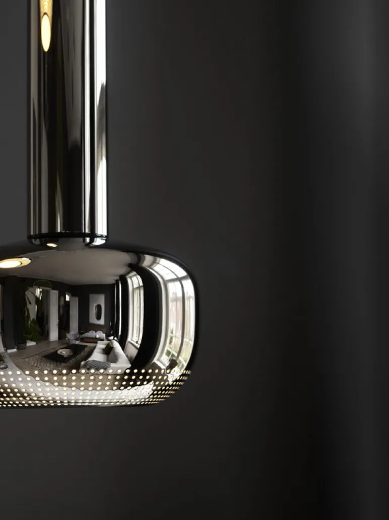 Pendellampan VL 56 får sina högt ansedda, nästan aristokratiska karaktärsdrag från sin glänsande yta av polerat krom. Pendellampan riktar ett bländfritt sken rakt neråt och genom de små hålen i den nedre delen av skärmen avges ett milt filtrerat, stämningsfullt ljus. Pendellampan VL 56 fungerar som blickfång på egen hand, såväl som i grupp om flera lysande lampor.