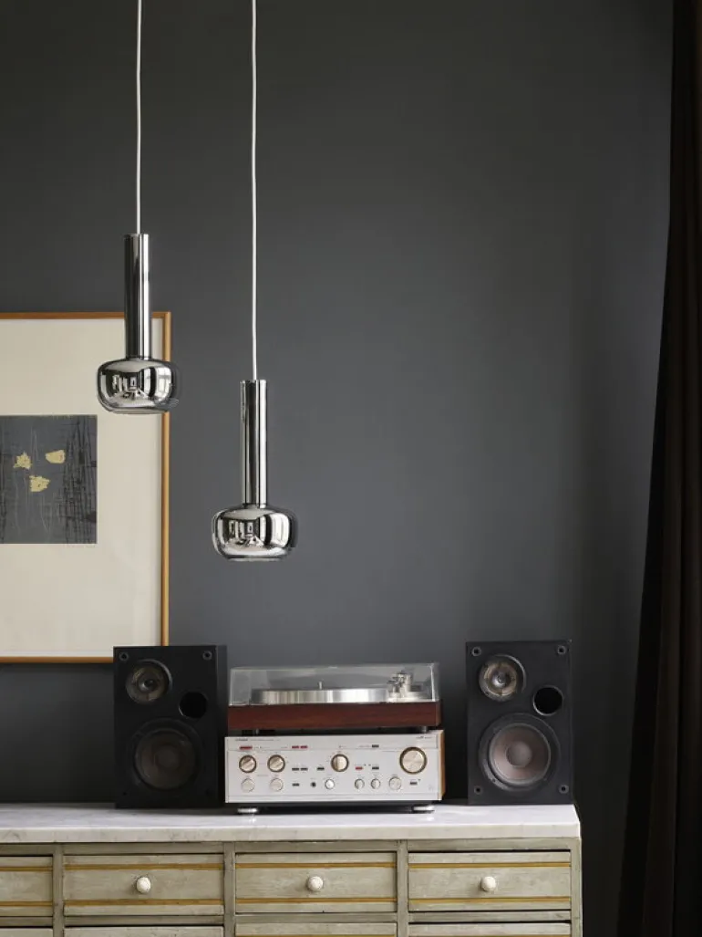 Louis Poulsens pendellampa VL 56 är takets lysande drottning, formgiven av den danske arkitekten Vilhelm Lauritzen. Lauritzen, känd som en av de främsta formgivarna inom modernism och funktionalism, skapade den eleganta pendellampan till Folkets Hus i Vesterbro i Köpenhamn, numera känt som konserthuset Vega. Louis Poulsen upptog den charmiga VL 56 i sitt sortiment 2023 – till alla designälskares förtjusning.