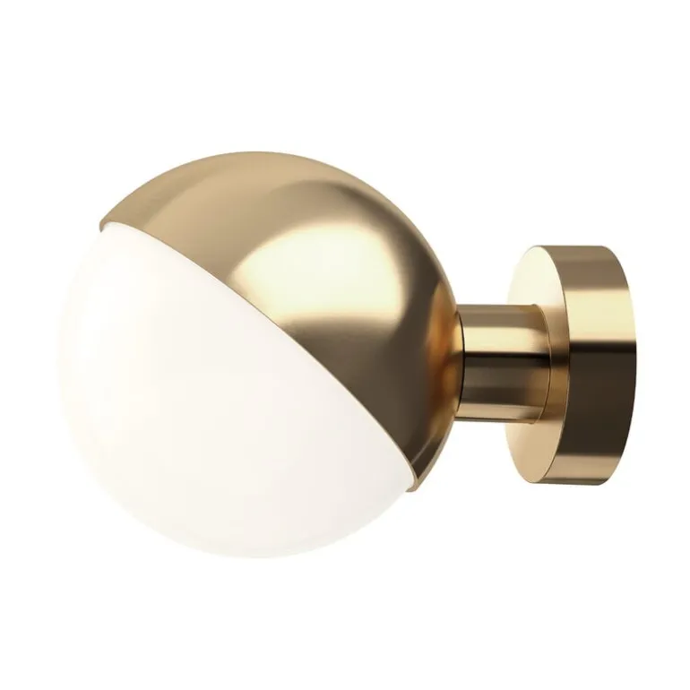 Louis Poulsens vägglampa VL Studio har en tidlös, ren linje som är typisk för dansk design. Armaturen är tillverkad av borstad mässing som över tid kommer att utveckla en vacker patina, medan kupan är tillverkad av munblåst, tredubbel opalglas som sprider ljuset mjukt och ger ett bländfritt sken som omedelbart skapar en varm och välkomnande atmosfär i alla utrymmen. Kupan på vägglampan kan lutas 90 grader åt sidan, vilket ger en mer flexibel ljusspridning. Denna vägglampa monteras direkt på väggen.