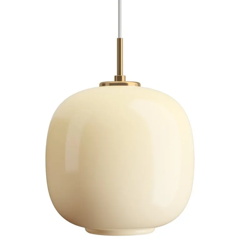 Den eleganta VL45 Radiohus-pendeln från Louis Poulsen designades ursprungligen för Radiohuset i Köpenhamn på 1940-talet. Mästaren bakom både armaturen och byggnaden är arkitekten Vilhelm Lauritzen, som är känd för sin funktionalistiska arkitektur i Danmark. VL45 Radiohus-pendeln har en vacker, rund skärm gjord av glansigt, blekgult glas som filtrerar ett mjukt, jämnt ljus. Öppningen i botten släpper igenom direkt ljus nedåt. Mässingsdetaljerna fulländar armaturens lyxiga utseende. VL45 Radiohus-pendeln är en tidlös armatur som passar perfekt som allmänbelysning, men även över matbordet.