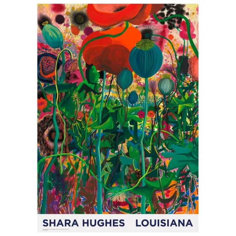 Louisiana Museum of Modern Arts poster bär konstverket Pop, som är skapat av den amerikanska konstnären Shara Hughes år 2021. Den livfulla blomsterkompositionen leker med de många betydelserna av sitt namn: ”Pop” syftar både på populärkultur och på det engelska ordet för vallmo, poppy. Precis som sitt smarta namn bjuder verket in betraktaren att hitta sina egna tolkningar och ger en färgglad och tankeväckande visuell upplevelse.