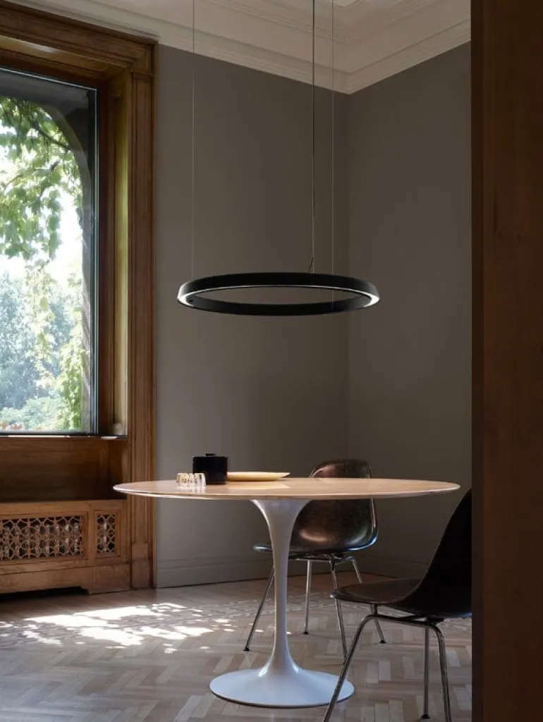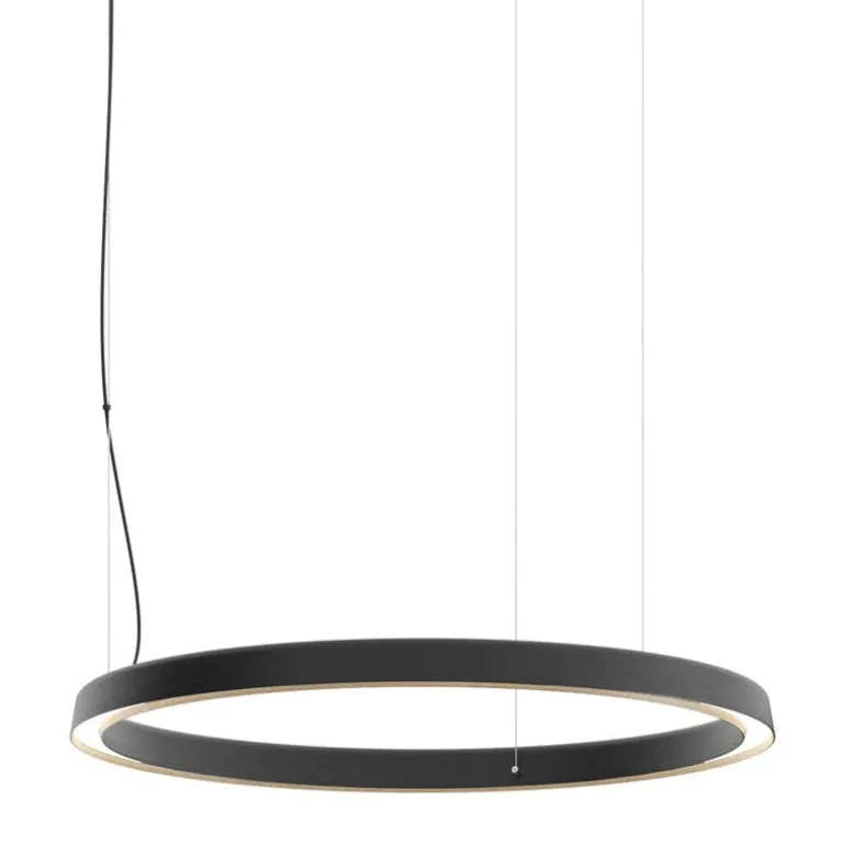 Luceplans hänglampa Compendium Circle från 2017 är en elegant och mångsidig lampa med en ringformad struktur. När du installerar lampan kan du välja om du vill att den ska ge ett starkt och direkt nedåtriktat ljus, eller, om den installeras på andra hållet, ett mjukare uppåtriktat ljus som reflekteras från taket. Du kan också installera flera Compendium Circle-lampor ovanpå varandra för att skapa en unik, modern ljuskrona. Compendium Circle hänglampa är tillverkad av aluminium och har tunna metalltrådar för upphängning. Observera att lampan inte kan installeras utan en takkopp, som säljs separat.