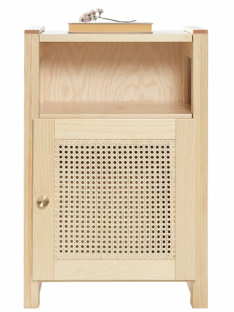 Lundias Classic nattduksbord med dörr har en charmig design som håller länge. Nattduksbordet är tillverkat av långsamt odlad, finsk furu som gör det till en stark och ekologisk möbel för ditt hem. Classic-nattduksbordet har en rymlig öppen hylla och en vacker dörr i rottingväv med ett handtag i borstad mässing. Förutom en bordslampa eller en väckarklocka har Classic nattduksbordet även plats för en frodig krukväxt och alla dina tidningar, böcker samt andra saker som kan förvaras på den öppna hyllan och skåpet.