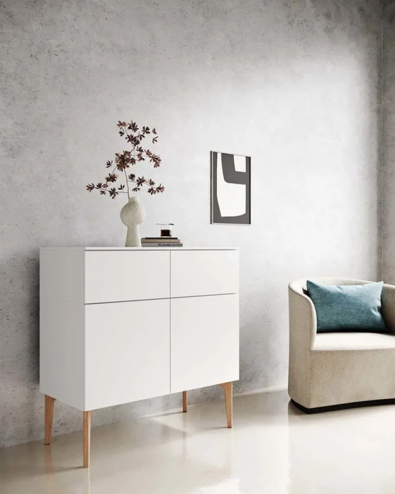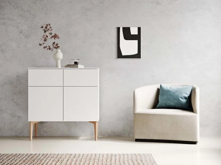 Fuuga från Lundia är en smart och snygg förvaringslösning för alla typer av utrymmen. Fuuga har en silkeslen finish som fingeravtryck inte fäster på, vilket gör den eleganta möbeln ännu mer hållbar och passande för daglig användning. Två lådor och en justerbar hylla ger mångsidighet, medan luckorna ger hela möbeln en stilren och harmonisk look. Fuuga står på en stilren bas av naturell ek.
