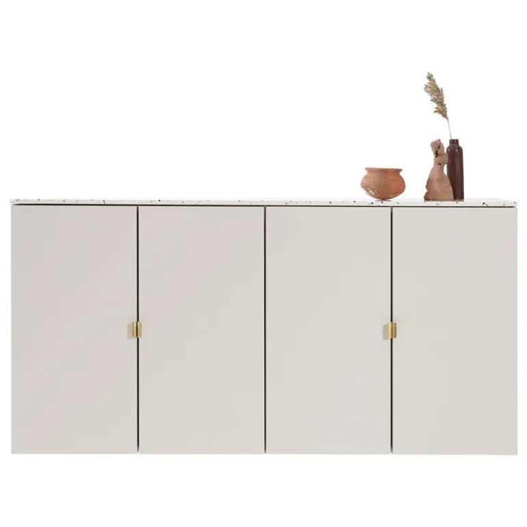 Sidobordet Fuuga från Lundia är en smart och vacker förvaringslösning för alla utrymmen. Bestående av två moduler, har sidobordet en silkeslen finish som stöter bort fingeravtryck och gör det eleganta möblet särskilt hållbart – perfekt för daglig användning. Två skåp med en justerbar hylla gör organiseringen enkel, medan Terrazzo-toppskivan och dörrarna, förfinade med mässingshandtag, ger ensemblen ett prydligt, harmoniskt utseende. Detta sidobord är designat för att monteras på väggen.