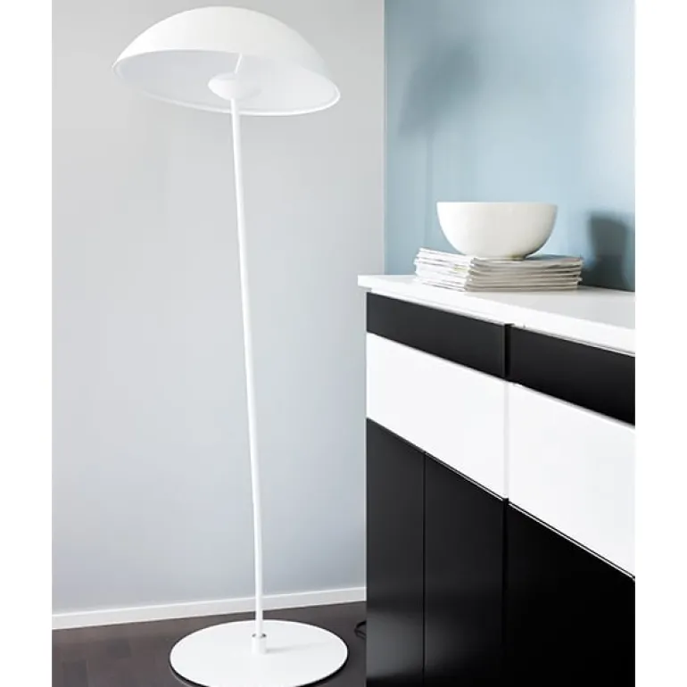 Kajo, designad av Jukka Korpihete för Lundia, är en golvlampa med en vacker kupolliknande skärm och en smal men robust arm. Skärmen har en akryldiffusor som döljer ljuskällan och ger en behaglig belysning. Kajo gör sig utmärkt som läslampa, men är också ett strålande inredningselement. Lampan är handsvarvad i Finland.
