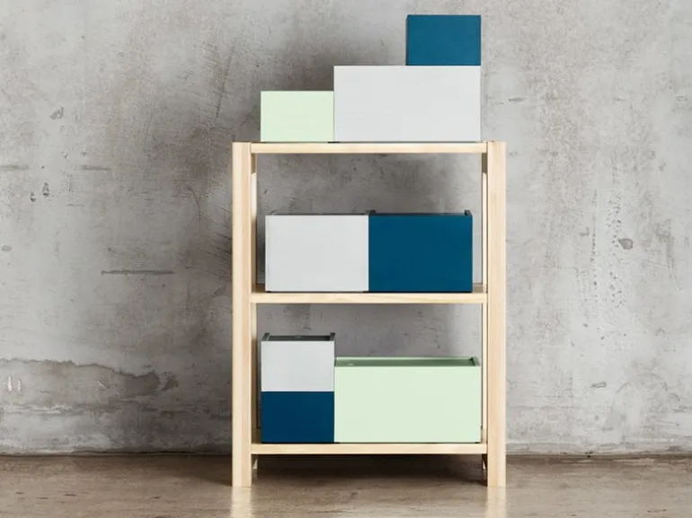 System-lådorna i trä, formgivna av Joanna Laajisto åt Lundia, är perfekta till förvaring av små föremål och tidningar. De passar perfekt med hyllsystemet Lundia Classic och kan även användas som fristående delar, exempelvis som sidobord. System-lådorna är handgjorda av furu och målade i svalt mintfärgade, blåa och gråa nyanser, så att den vackra träådringen syns igenom.
