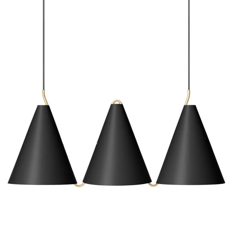 LYFA:s hänglampa Mosaik Sidebyside är en klassiker inom belysning, designad av Bent Karlby 1959. Dess design baseras på två element: koniska skärmar och en dekorativ mässingsrör som fungerar som lampans upphängning och kopplar samman de tre separata skärmarna. Konerna riktar det mesta av ljuset nedåt, men de öppna topparna tillåter små strömmar av ljus att riktas mot taket samtidigt som de också belyser mässingsrören.