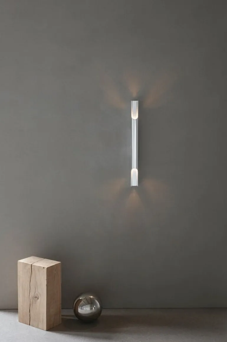 LYFA:s Pan vägglampa är både en ljuskälla och ett konstverk i ett paket av anodiserad aluminium. Den fantastiska lampdesignen från 1970-talet består av ett enda aluminiumrör, som påminner om piporna på ett orgel, vilket ger lampan en verkligen unik struktur – den iögonfallande designen kommer säkert att göra ett uttalande i vilket utrymme som helst. Som man kan förvänta sig av lampans designer, Bent Karlby, är den rörliga formen inte bara estetiskt tilltalande utan har också en funktion: röret riktar ljuset både uppåt och nedåt, kastar ett vackert ljusmönster på väggen och infuserar rummet med vackert atmosfäriskt ljus.