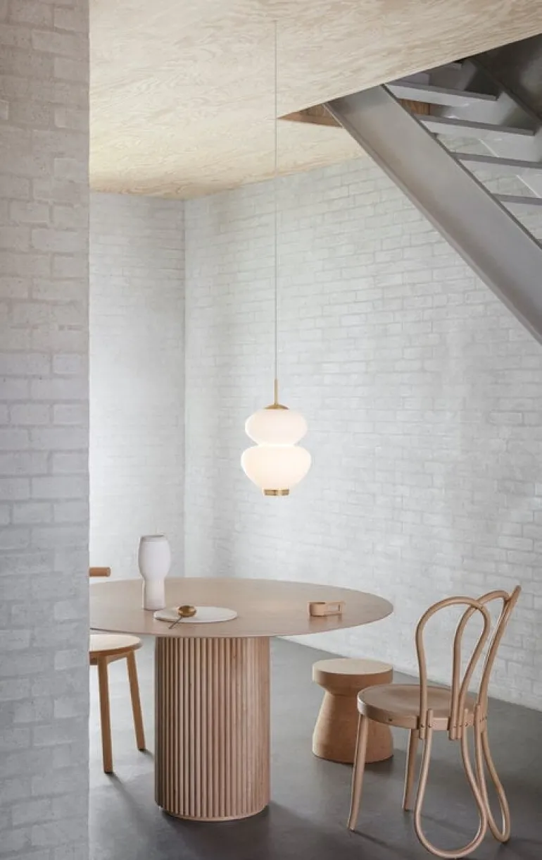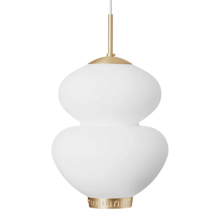 Peanut-ljuskällan är handgjord av opalvitt glas och avslutad med charmiga detaljer i mässing. De 3 lagren av glas i lampskärmen resulterar i ett jämnt, mjukt och atmosfäriskt ljus, vilket gör Peanut-ljuskällan idealisk som en sovrum- eller vardagsrumslampa. Dessutom ser taklampan vacker ut ovanför matbordet, antingen individuellt eller som en grupp av flera ljuskällor i olika storlekar.