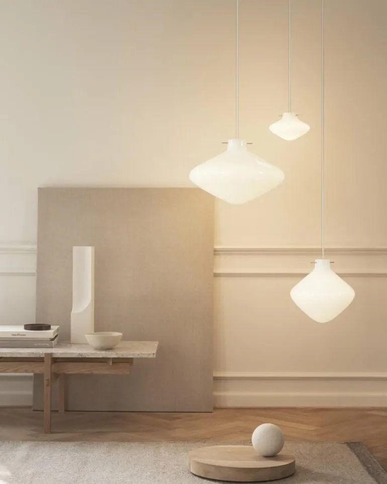Repose-ljuskällan skapar ett behagligt, atmosfäriskt ljus i alla utrymmen och finns tillgänglig i olika storlekar vars form är något annorlunda i varje modell. Därför kommer Repose säkert att förtrolla alla fans av nordisk design, inte bara som en enskild pendel, men också i en klunga av flera minimalistiska ljuskällor.