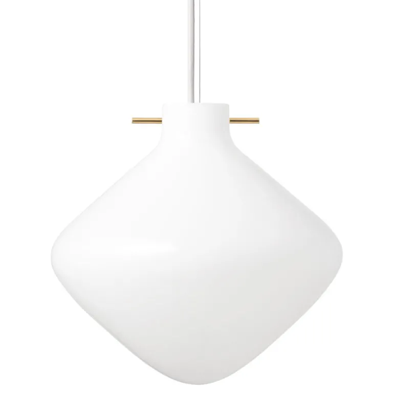 LYFA:s pendellampa Repose är en fascinerande kombination av organiskt flödande linjer och tydlig geometri. Lampan, som är skapad av designstudion GamFratesi, består av en glaskupol i munblåst opalglas med en tunn linje som genomborrar dess övre del. Inspirationen till metallpinnen som kupolen hänger från kommer från traditionella japanska hårnålar.