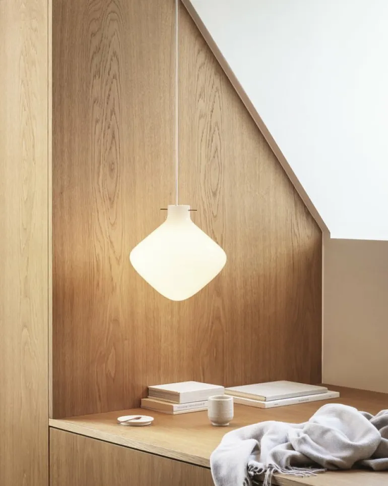 Repose-lampan skapar ett behagligt, atmosfäriskt ljus i alla utrymmen och finns tillgänglig i olika storlekar vars form är något annorlunda i varje modell. Därför kommer Repose säkert att förtrolla alla fans av nordisk design, inte bara som en enskild pendel, men också i en klunga av flera minimalistiska lampor.