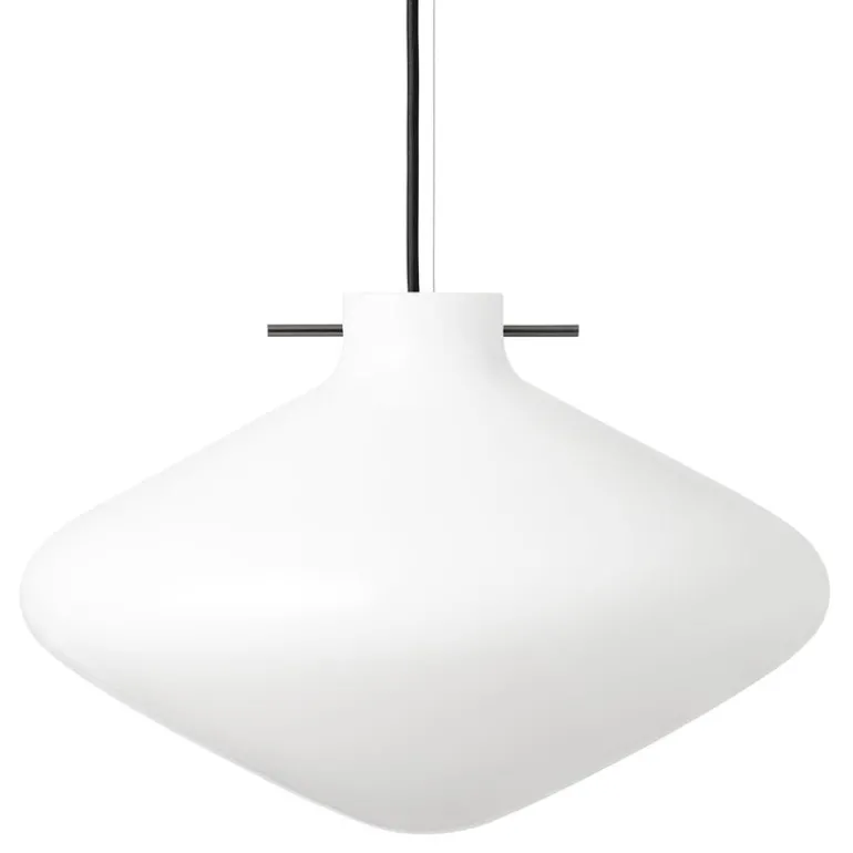 Vi ville ge stor betydelse till den minsta detaljen i lampan – den tunna pinnen som går genom glasskärmen. En väsentlig designelement som håller skärmen samtidigt som den skapar en lugn och svävande känsla av balans, säger formgivarna.