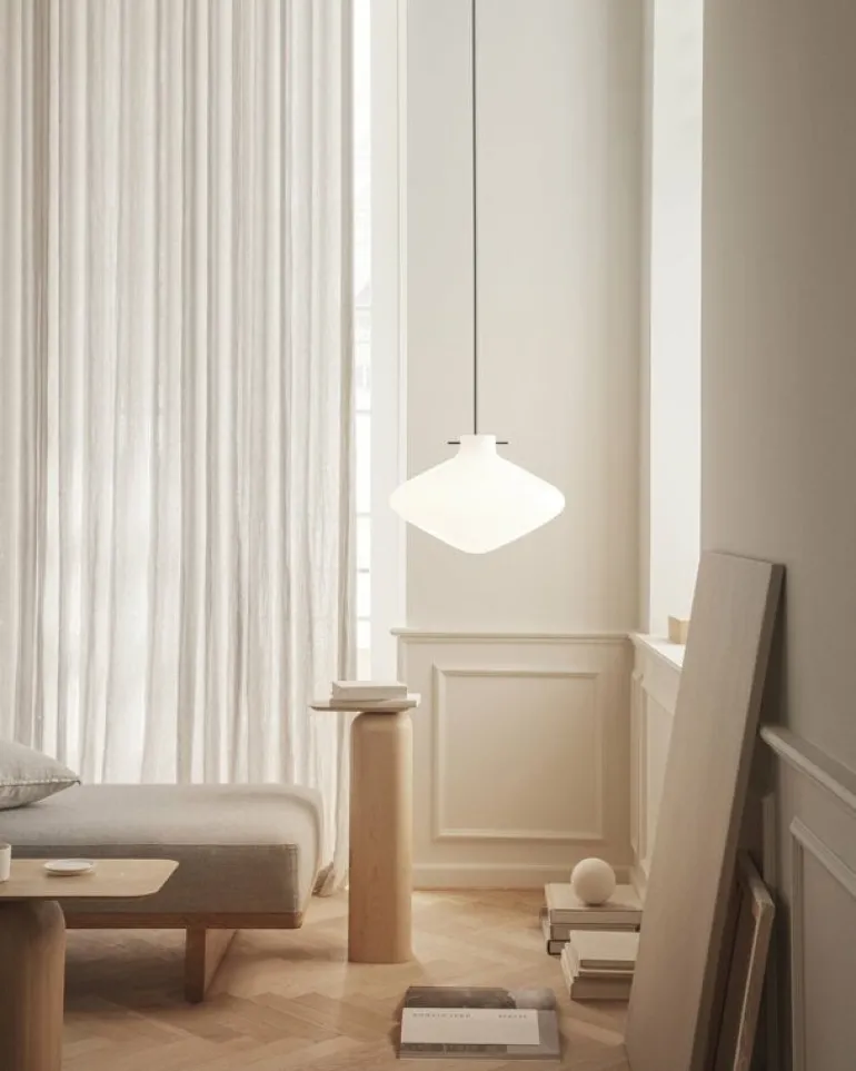 Repose-lampan skapar ett behagligt, atmosfäriskt ljus i alla utrymmen och finns tillgänglig i olika storlekar vars form är något annorlunda i varje modell. Därför kommer Repose säkert att förtrolla alla fans av nordisk design, inte bara som en enskild pendel, men också i en klunga av flera minimalistiska lampor.