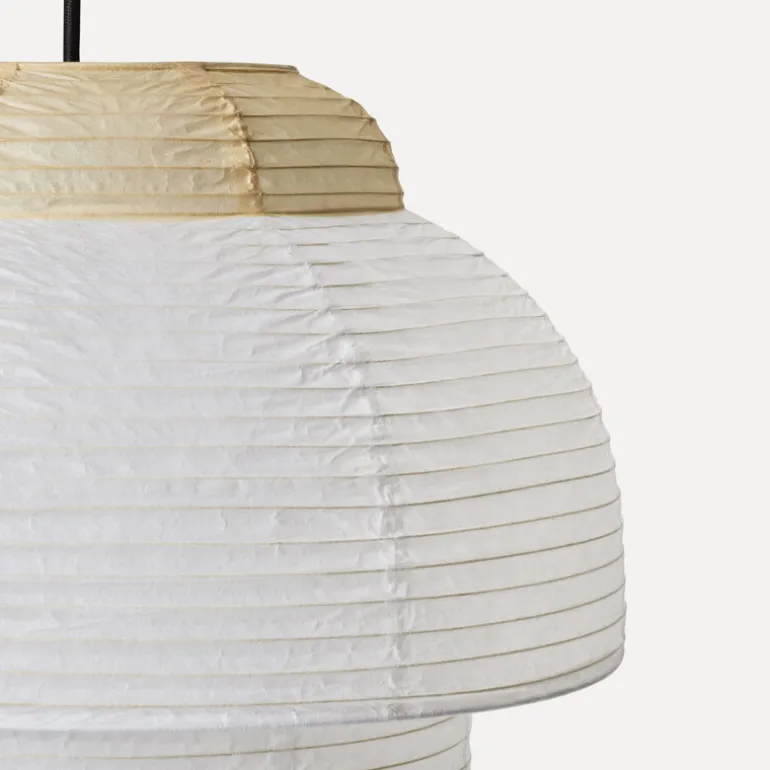 Pendellampan Papier Double från Made By Hand är en modern tolkning av den klassiska rislampan. Taklampan i två delar är en tankeskapelse från formgivaren Nina Bruun, som låtit sig inspireras av materialen hon använder. ”Jag tycker om kvaliteten på ljuset som passerar genom det taktila materialet”. Så beskriver formgivaren själv lampan – och faktiskt så skiner ljuset på ett närmast poetiskt sätt genom det tunna rispappret på Papier Double. Den stämningsskapande ljuskällan är perfekt att använda som ett självständigt, dekorativt inslag, samtidigt som den skapar ett effektfullt helhetsintryck när den arrangeras i grupp i taket i vardagsrummet, i restauranghallen eller i hotellfoajén.