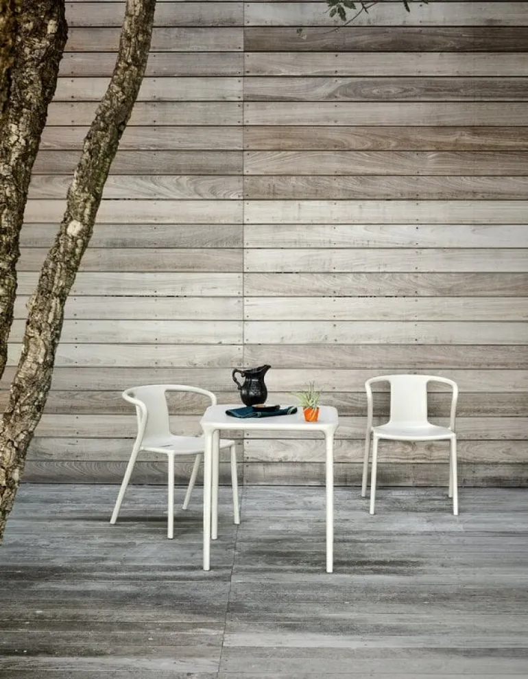 Air fåtöljen från Magis är ett mångsidigt och lätt möbel med en modern och enkel utseende. Designad av Jasper Morrison, charmar stolen med sin vackra design och praktiska funktioner: den är stapelbar, lätt att rengöra och lämplig för både inomhus- och utomhusbruk. Namnet på Air-kollektionen har sitt ursprung i den speciella tillverkningsmetoden, luftformningstekniken, som möjliggör en extremt hållbar men ändå luftig konstruktion. Tillverkad av en blandning av polypropen och glasfiber, är Air-möblerna en stilfull och tidlös tillägg till både hem och offentliga utrymmen.