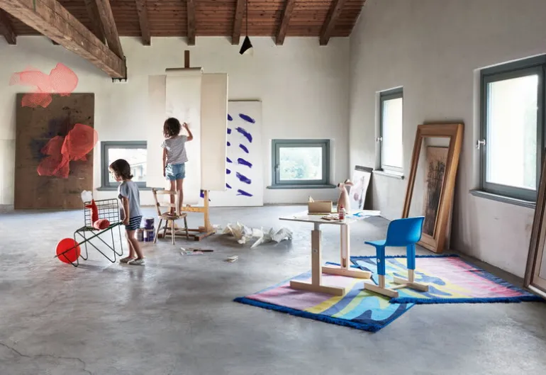 Skulpturen Fish från Magis låter fiskar simma upp ur havet och in i ditt hem. Den charmiga skulpturen, designad av Benedetta Mori Ubaldini, vänder upp och ner på hela världen, likt ett barns fantasi: i den nya världen simmar fiskarna i taket. Fish är en unik mobil som tillverkats av ett metallnät i fluorescerande röd färg – ett elegant och lekfullt inslag i till exempel barnkammaren eller vardagsrummet, men även i offentliga miljöer. När mobilen svävar i luften väcker den uppmärksamhet, intresse och kreativitet hos både barn och vuxna.
