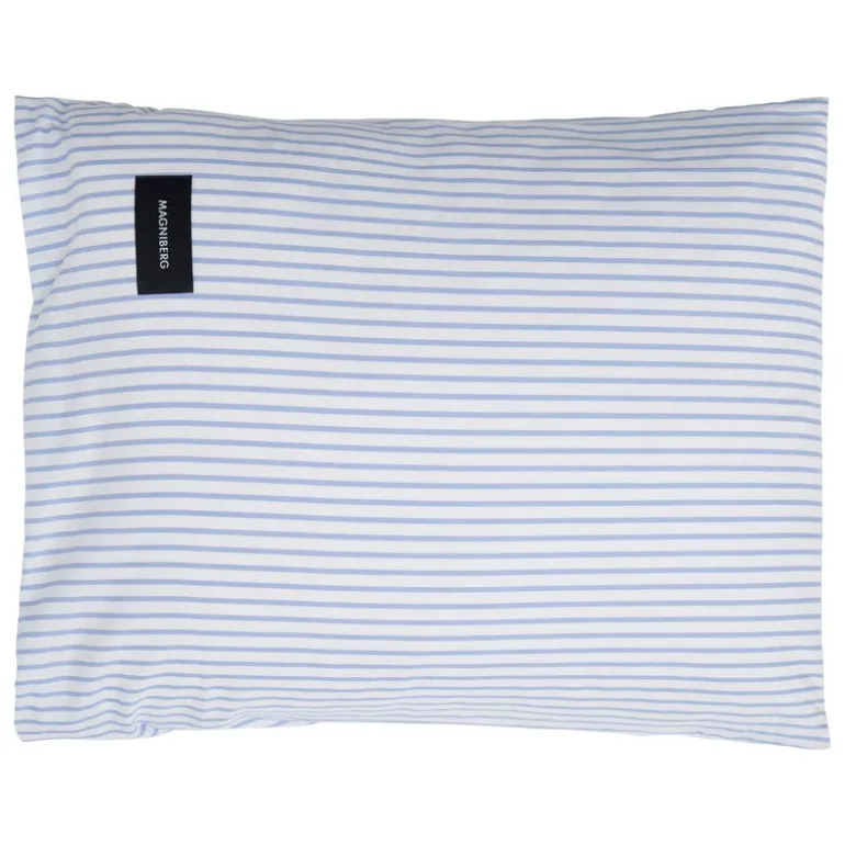 Örngottet Wall Street Oxford från Magniberg pryds av ett sofistikerat randigt mönster inspirerat av de klassiska skjortorna från 1980-talets bankvärld. Denna matta Oxford-tyg är tillverkat av finaste egyptiska bomull, som värderas för sina långa, starka och mjuka fibrer. Det tätt vävda tyget har en trådtäthet på 390, vilket gör det extremt slitstarkt och samtidigt mjukt. Wall Street Oxford-kollektionen är en vinnare av Wallpaper Design Award 2021.