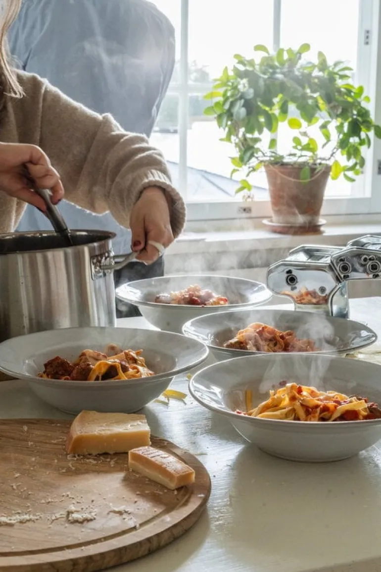 Till pastamaskinen Atlas 150 medföljer, förutom bruksanvisningen, en manual med 10 autentiska pastarecept. Maskinen är tillverkad i Italien.