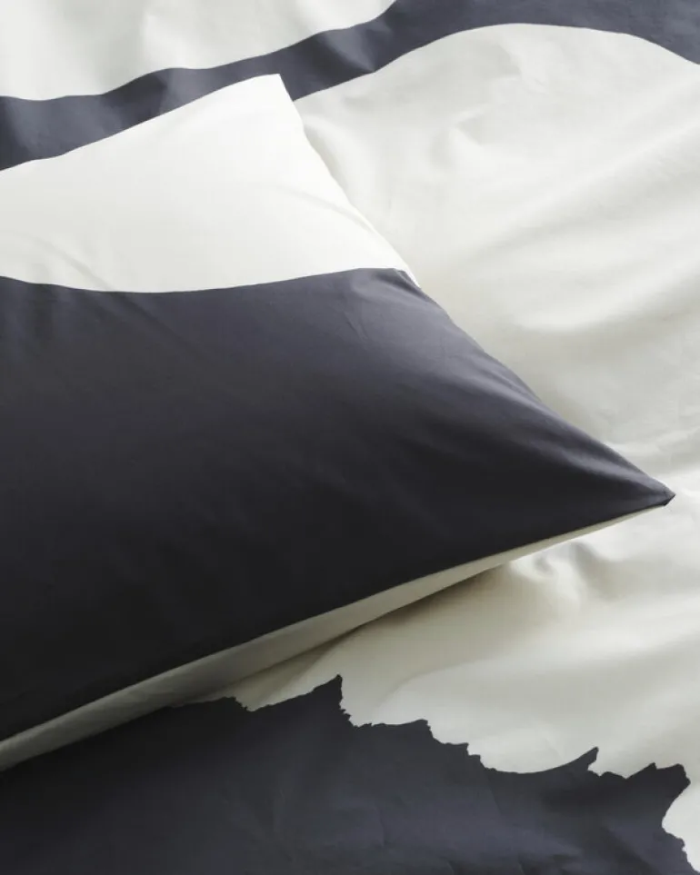 Marimekkos örngott Iso Unikko pryds av Maija Isolas ikoniska blommönster i en förstorad, svartvit version. Örngottet är tillverkat av högkvalitativ, ekologisk bomullspercale, som uppskattas för sin andningsförmåga och sin mjuka känsla mot huden, och mäter 50 x 60 cm. Komplettera med Marimekkos örngott Iso Unikko.