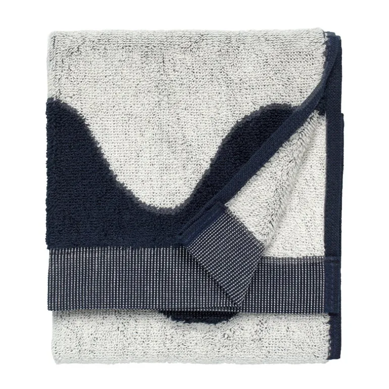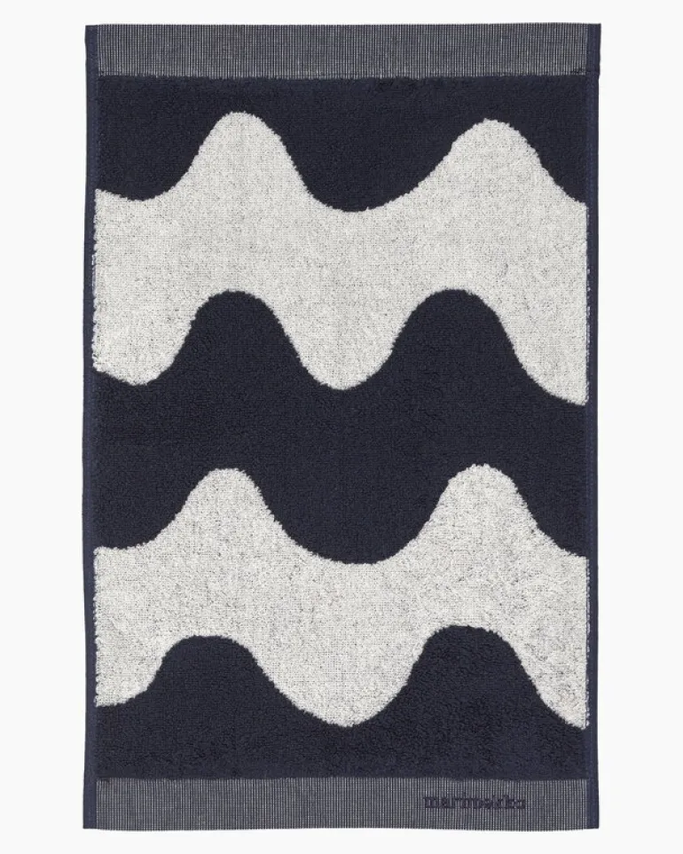 Gästhandduken Lokki från Marimekko pryds av Maija Isolas mönster från 1961. Lokki inspirerades av den vågiga skuggan som solen skapar på en gardin. Gästhandduken är tillverkad i mjuk bomullsfrotté och mäter 30 cm x 50 cm.