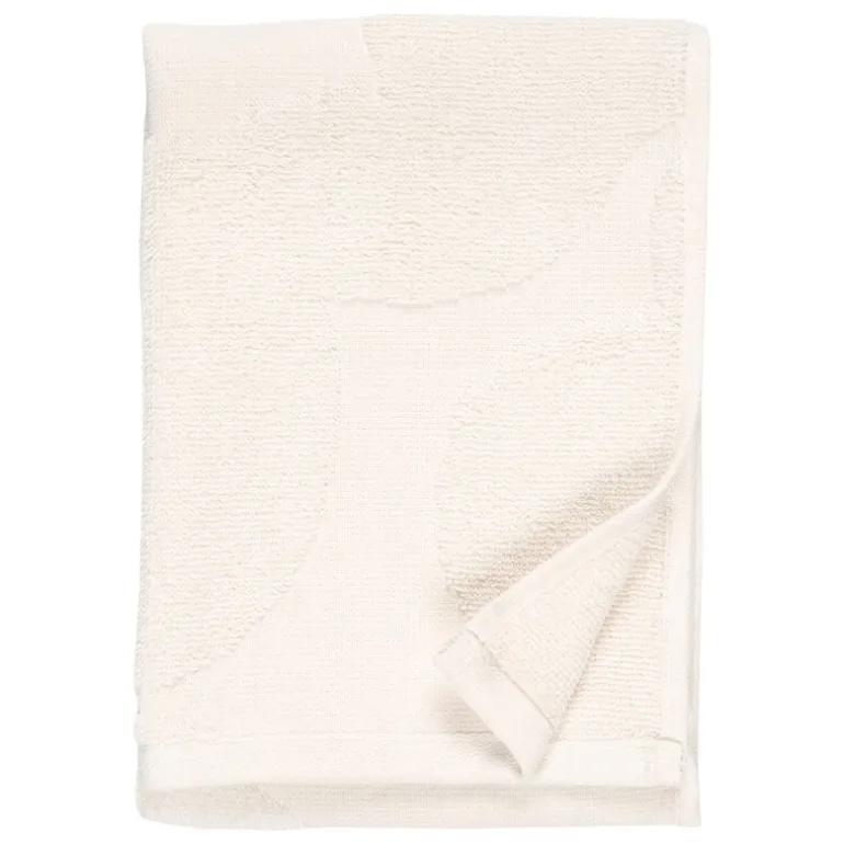 Marimekkos Unikko Solid badlakan är prytt med Maija Isolas upphöjda blommönster i en naturligt vit nyans. Handdukens baksida är slät. Badlakanet är tillverkat i mjuk, absorberande frotté av ekologisk bomull och ger en elegant touch till badrumsmiljön och vardagsrutinerna. Komplettera med andra Unikko-handdukar.