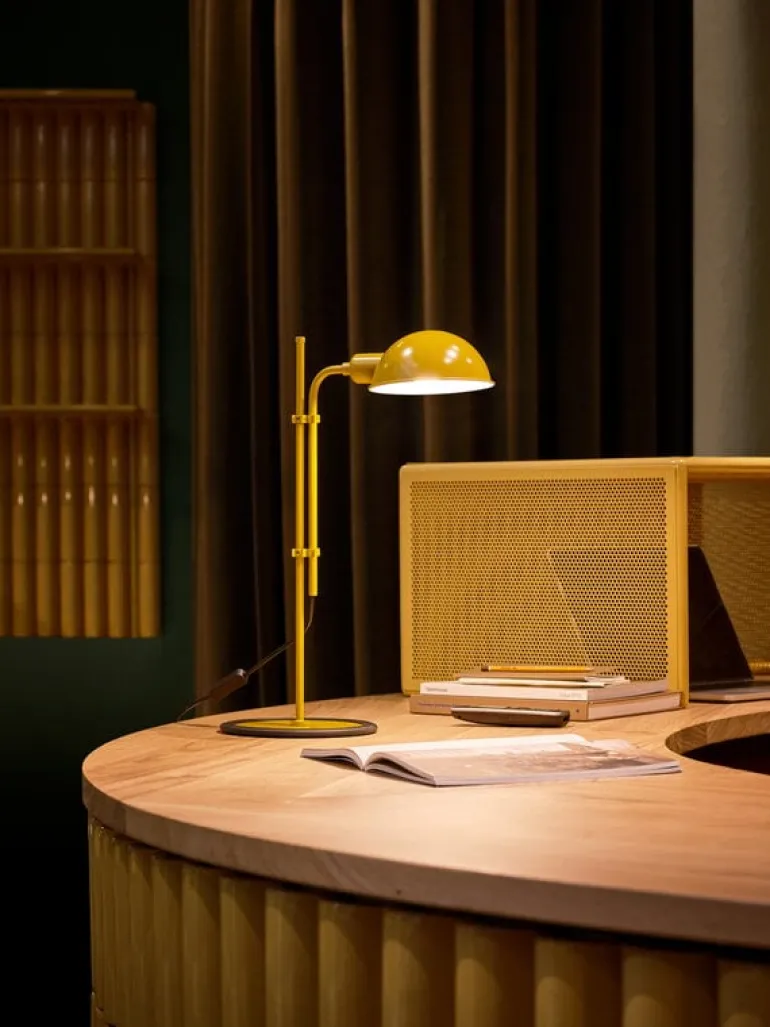 Bordslampan Funiculí från Marset är en ny utgåva av Lluís Porqueras designklassiker från 1979. Som namnet antyder, är Funiculí baserad på en funikulär upp-och-ned-rörelse: dess höjd kan justeras med en enkel klämfunktion, och även ljushuvudets riktning kan roteras 360º för att peka uppåt, nedåt eller åt sidan. Den mångsidiga justerbarheten gör Funiculí till en perfekt lampa för arbete och läsning, och dess puristiska former och tidlösa utseende kompletterar både klassiska och samtida interiörer.