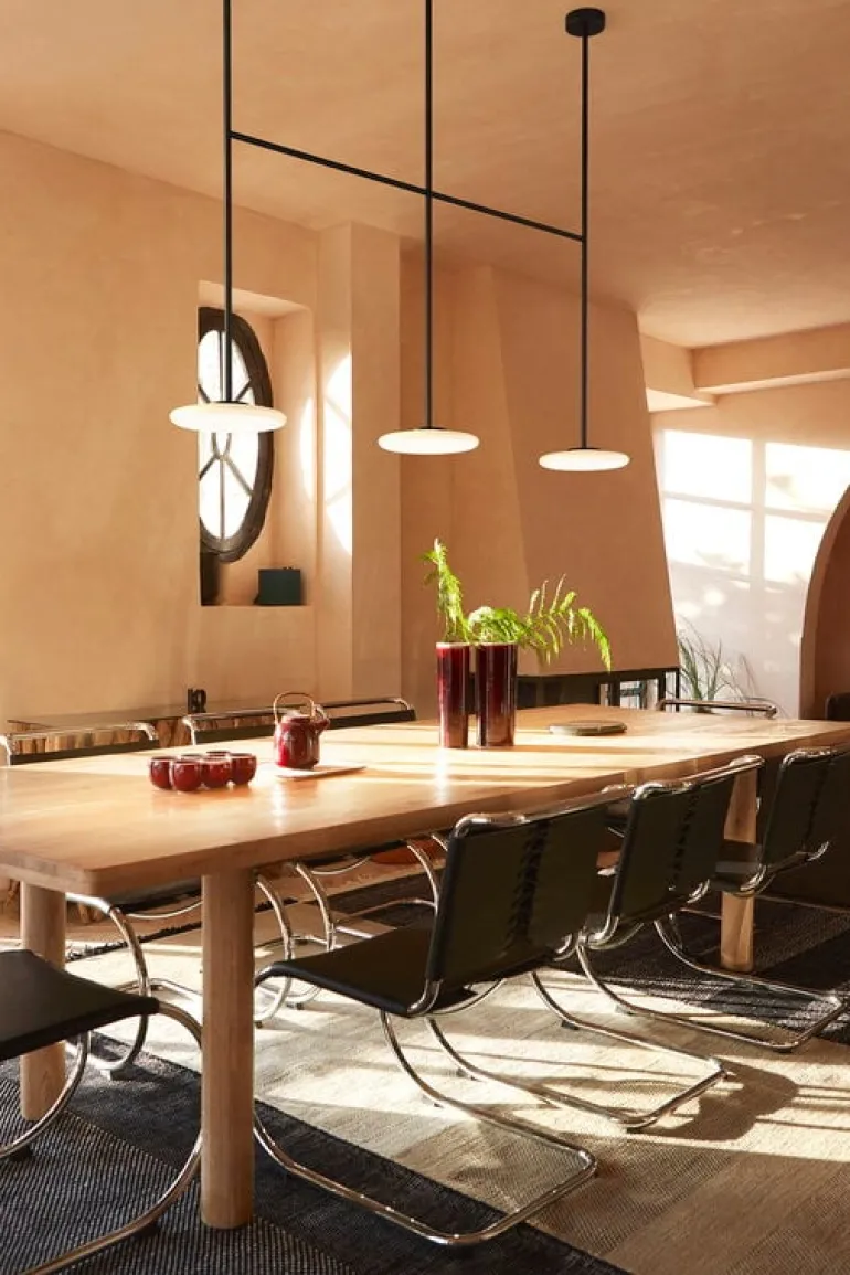 Ihana-lampan gör att du kan bygga belysningssystem i olika storlekar. Modellerna kan användas för att skapa passande belysning över långa mat- och konferensbord. Dessutom har lampan Dim to Warm-tekniken, så att du förutom att styra ljusets intensitet också kan justera färgens temperatur till önskad atmosfär, från stearinljus till en ljusare varm vit färg.