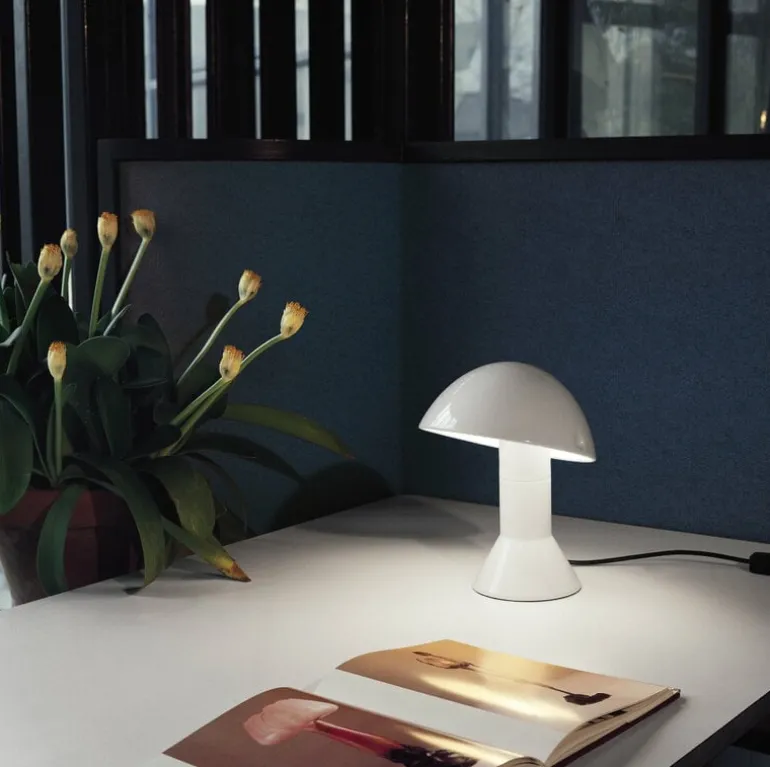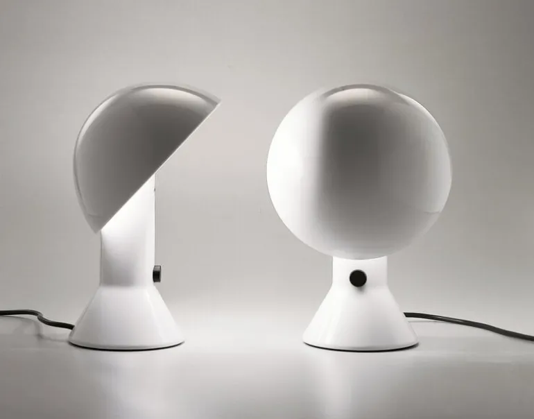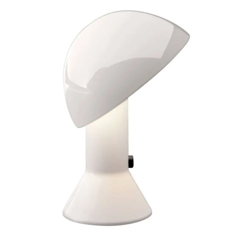 Martinelli Luce’s Elmetto bordslampa glädjer med sitt glada uttryck. Designad av Elio Martinelli och lanserad 1976 i Italien, har Elmetto en halvklotformad diffusor och en robust konisk bas, vilket gör att armaturen sticker ut även när den är avstängd. Tack vare den justerbara diffusorn kan du justera ljusvinkeln efter eget tycke. Bordslampan är tillverkad av formsprutad harts med en högglansig finish.