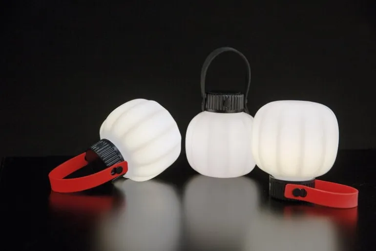 När hon designade Kiki, inspirerades kollektionens designer, italienska Paola Navone, av kinesiska rispapperslyktor. Den trådlösa lampan Kiki har en inbyggd dimmerfunktion och ett USB-uppladdningsbart batteri som ger ljus i cirka 5 timmar med en laddning. Den bärbara lampan Kiki tilldelades iF Design Award 2019.