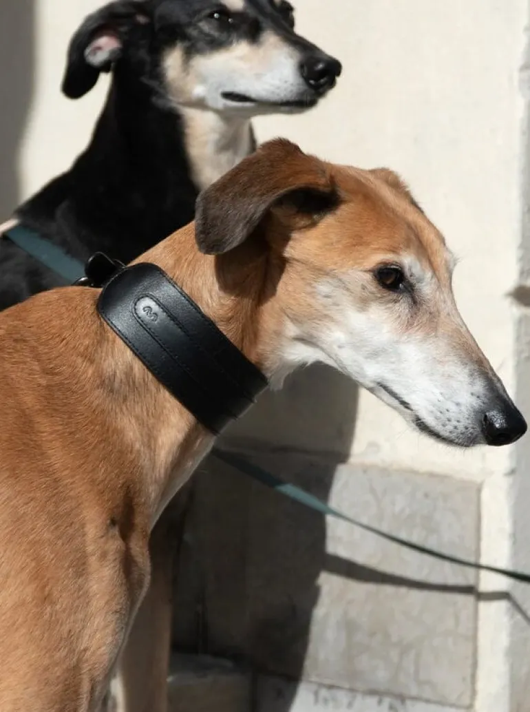 Masimalos Arch Wide-halsband är skräddarsytt för vinthundar och andra hundar som behöver ett halsband med lite större passform. Det är tillverkat av vegetabiliskt garvat läder som mjuknar vackert med tiden och användningen, samtidigt som det behåller sin styrka och hållbarhet. De mässingsbelagda detaljerna ger designen en raffinerad, lyxig touch. Med Arch Wide-halsbandet blir din pälsbeklädda vän den mest stiligaste på varje promenad!