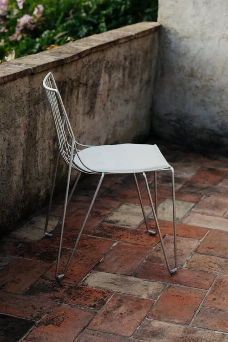 Massproductions stol Tio är en elegant sittplats som passar både inomhus och utomhus. Stolen Tio, som formgivits av Chris Martin, är helt och hållet tillverkad av galvaniserad ståltråd, vilket ger stolen dess lätta och luftiga utseende. Den sofistikerade Tio-kollektionen är ett tidlöst och vackert val för både matsalen och terrassen – inomhus som utomhus, med andra ord.