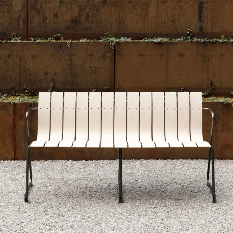Trädgårdsbänken Ocean från danska Mater är en nytolkning av den utemöbelserie som designades av Nanna & Jørgen Ditzel 1955. Förutom den extremt harmoniska formen är det även materialen som gör kollektionen Ocean så unik, den är tillverkad av återvunna fisknät och plast från havet. Sitsar och bordsskivor består av starka plastlameller, och den luftiga designen blir komplett tack vare grålackerade metallramar. Alla delarna är återvinningsbara. Ocean fick designpriset Wallpaper* 2019.
