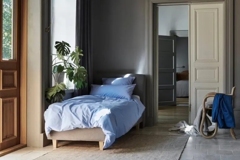 Örngottet Noora är del av finska sängtillverkaren Matris kollektion av sängkläder med samma namn. De högkvalitativa sängkläderna är tillverkade i tätt vävd percale-bomull och materialet är väldigt slitstarkt. Det lena, diskret glansiga tyget känns lyxig mot huden och håller sängen behagligt sval. Örngottet Noora har en inre flik som håller kudden på plats och kommer förpackad i en vacker bomullspåse med samma färg.