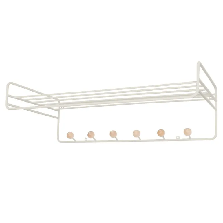 Hatthyllan Bill, som designats av Louise Hederström för svenska Maze, ingår i en kollektion med moderna förvaringsmöbler som har en minimalistisk framtoning och som enkelt smälter in i vilken hall som helst. Den geometriska designen hos den väggmonterade hatthyllan Bill är en kombination av en ram i återvunnen metall och lekfulla krokar som rundas av med träkulor. Komplettera din förvaringslösning med andra varor från Mazes Bill-kollektion.