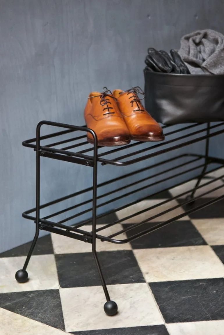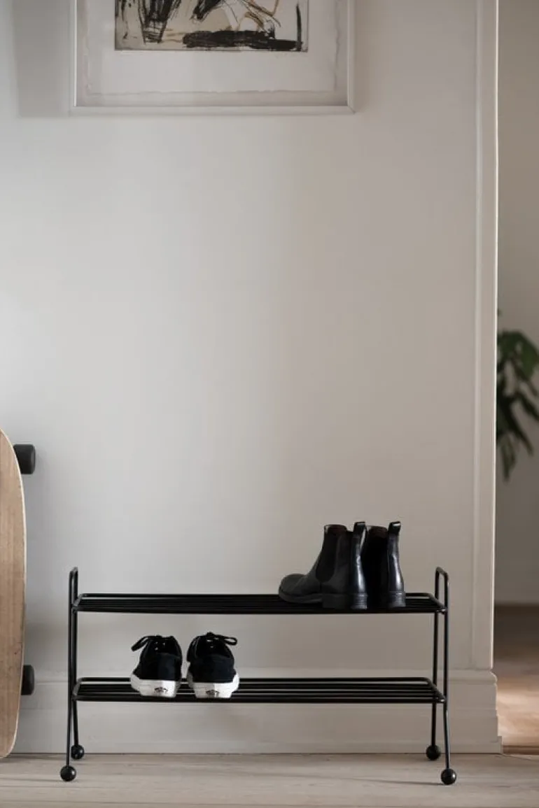 Skohyllan Bill, som designats av Louise Hederström för svenska Maze, ingår i en kollektion med moderna förvaringsmöbler som har en minimalistisk framtoning och som enkelt smälter in i vilken hall som helst. Skohyllan Bills geometriska design utgörs av en ram i återvunnen metall kombinerat med lekfulla krokar som kompletterats med runda träkulor. Komplettera din förvaringslösning med andra varor från Mazes Bill-kollektion.