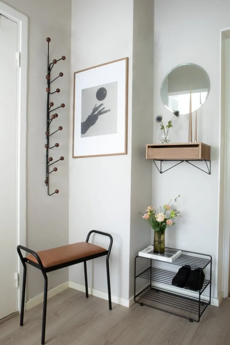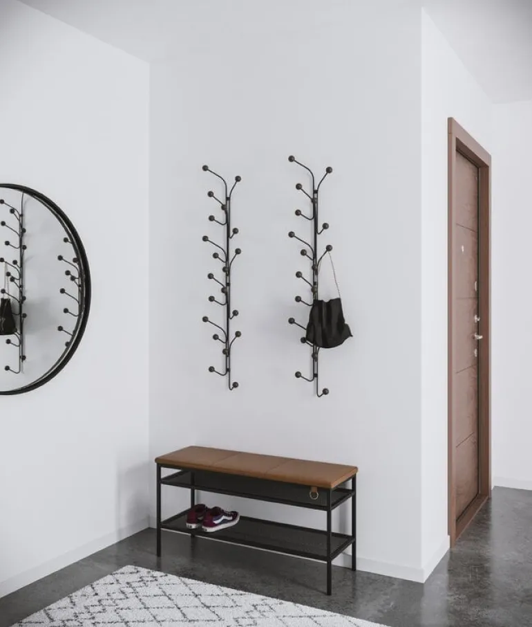 Klädhängaren Bill, som designats av Louise Hederström för Swedish Maze, är en del av en kollektion med moderna förvaringsmöbler med ett minimalistiskt utseende som passar alla hallar. Den geometriska designen hos den väggmonterade klädhängaren Bill är en kombination av en ram i återvunnen metall och lekfulla krokar som rundas av med träkulor. Komplettera din förvaringslösning med andra varor från Mazes Bill-kollektion.