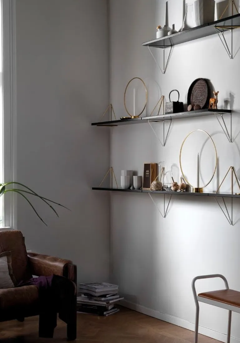 Pythagoras konsoler, hyllor och lådor ger dig friheten att skapa hyllor i olika storlek, färg och form var som helst. Använd dem som en enkel vägghylla, nattduksbord, hörnhylla, kökslådor eller ett stort hyllsystem som täcker en hel vägg. Konsolerna kan monteras antingen nedanför eller ovanför hyllan i fyra olika positioner, och deras luftiga design lämnar dessutom plats för fria ytor. Lek, experimentera och skapa den perfekta hyllan för dina egna behov!