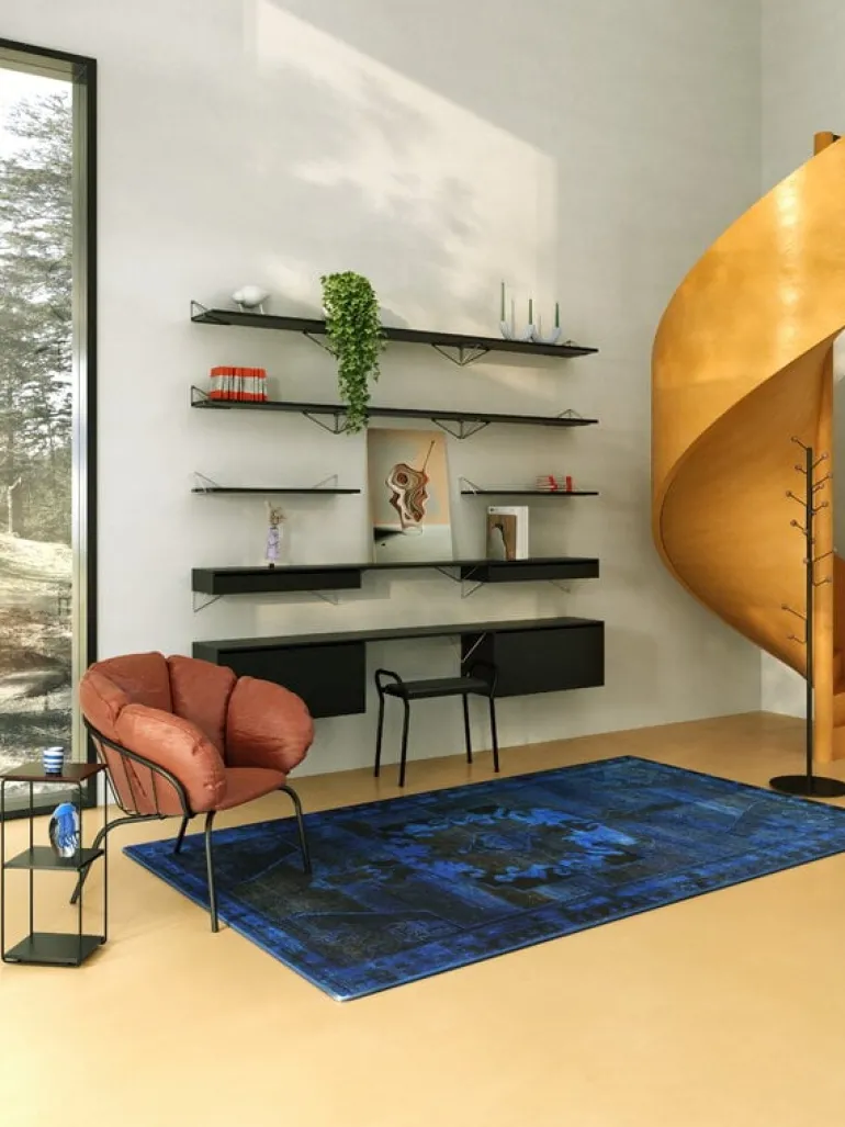 Skåpet Pythagoras från svenska Maze är en del av ett unikt hyllsystem som kombinerar matematikens precision med designens kreativa möjligheter. Kollektionen Pythagoras, designad av Gustav Rosén, inspirerades av Pythagoras triangelteorem, vilket gör triangeln till hyllsystemets bas och mest väsentliga element.